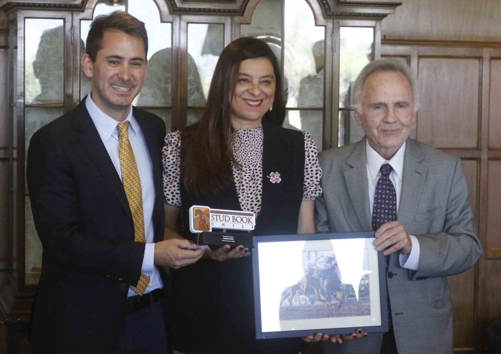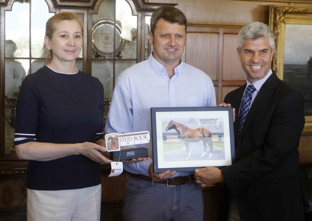 Patricio Vial recibió de manos de Paola del Pino e Ignacio Coloma el premio a Padrillo del Año para Midshipman, que entre su destacada descendencia que dejó en nuestro establecimiento destacó precisamente el campeón The Goat.
